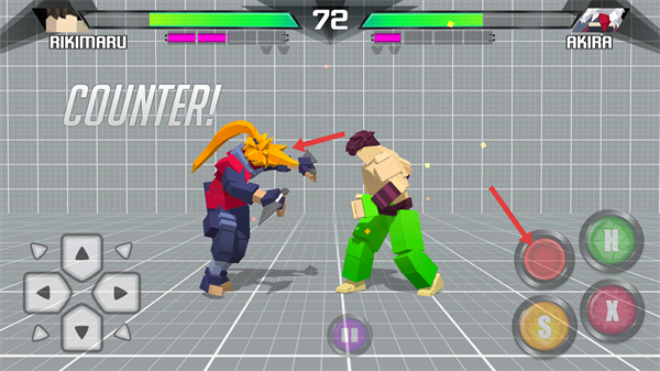 3、觸發(fā)【COUNTER】反擊狀態(tài)時,快速點擊紅色攻擊鍵,打出高額傷害壓制對手血量。